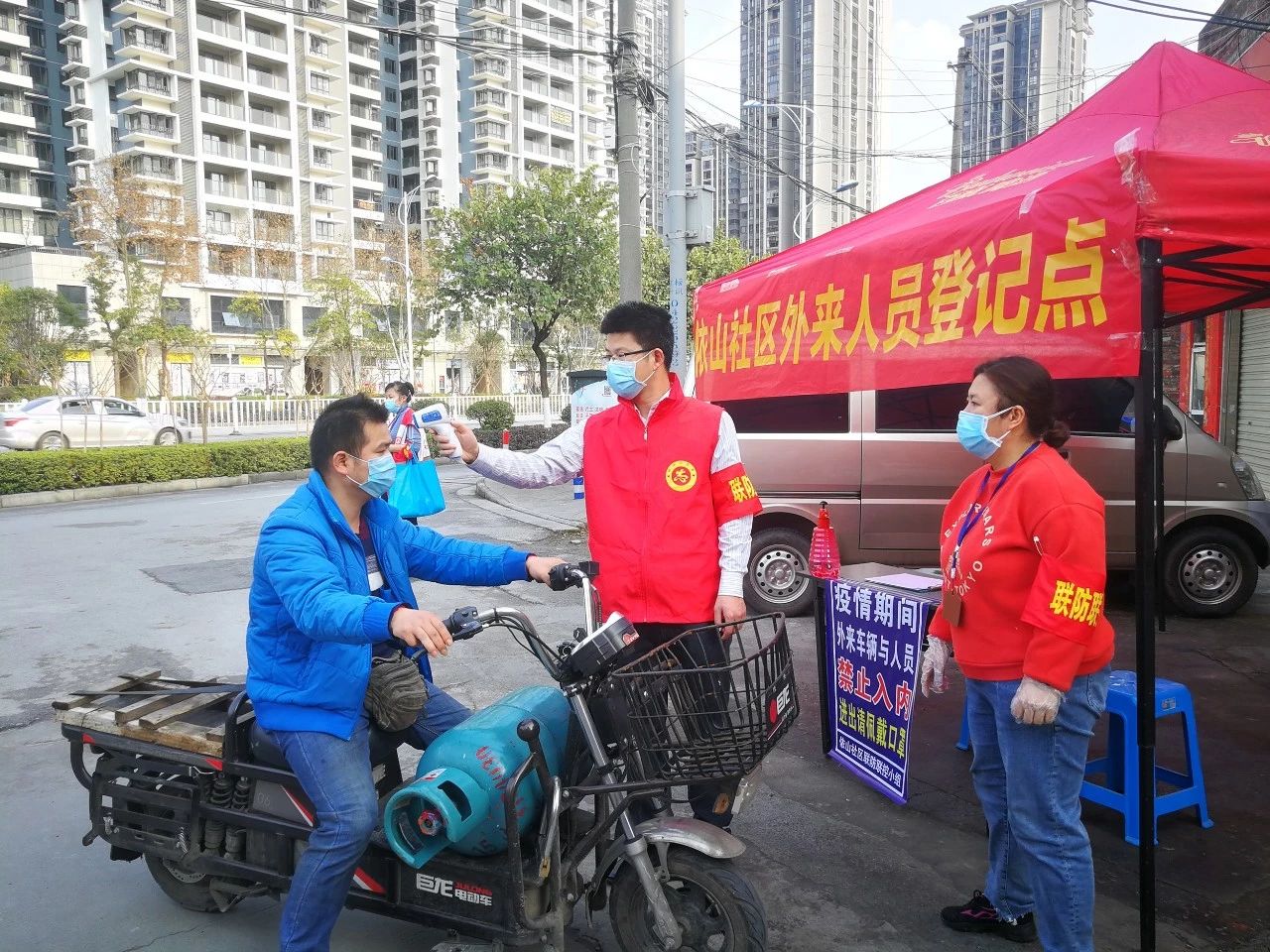 隨后,在社區(qū)工作人員的安排下,突擊隊(duì)成員走街串巷,手持小喇叭和疫情防控宣傳小冊子,向居民宣傳防疫知識;在社區(qū)登記點(diǎn),協(xié)助社區(qū)工作人員為居民做好量體溫登記工作。